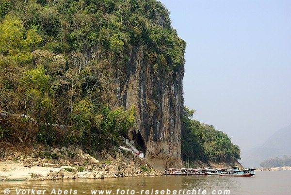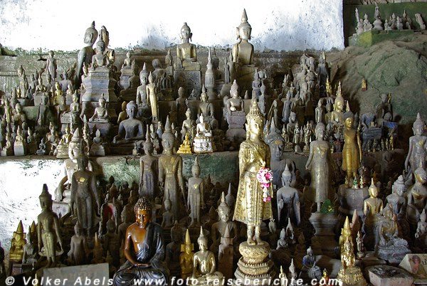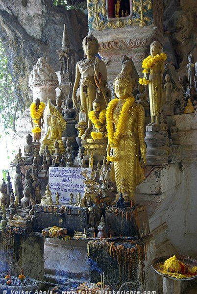 In Luang Prabang bieten viele Reisebüros und Agenturen Bootsfahrten zu den Pak Ou Höhlen an. Sie liegen etwa 2 Stunden, in etwa 25 Kilometer Entfernung, flussaufwärts in einem Steilhang am westlichen Ufer des Mekong. Die Höhlen (Tham Thing, die untere Höhle und Tham Phum), liegen am Zusammenfluss von Mekong und Nam Ou, in dort steil aufragenden Kalksteinfelsen. Die Höhlen sind voller Buddhafiguren in den verschiedensten Größen, aus sämtlichen Stilrichtungen und Epochen.