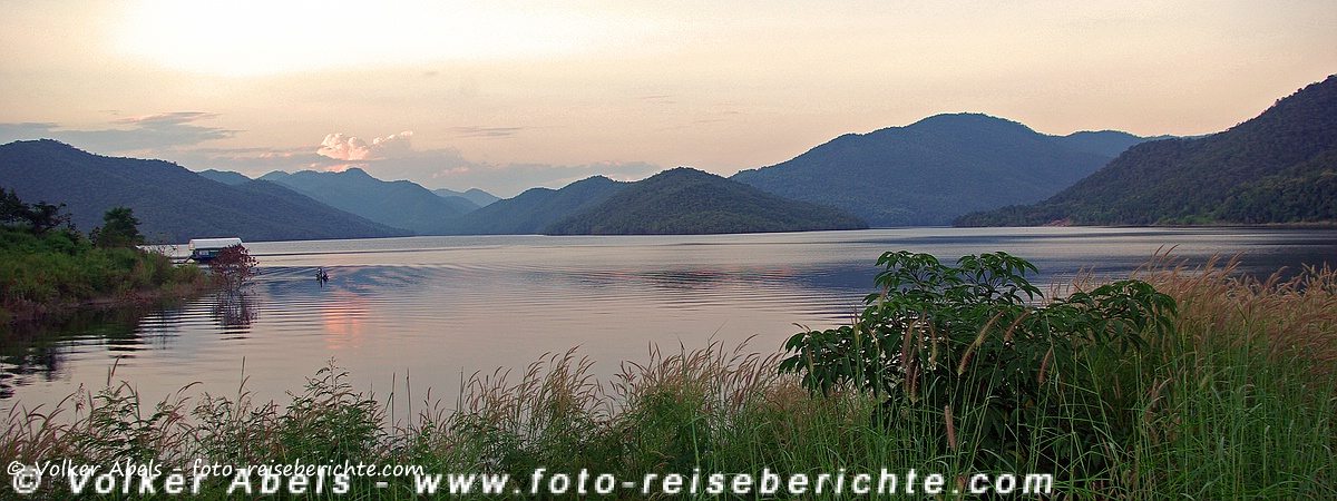 Das Foto entstand an einem Abend bei Sonnenuntergang. Wir machten noch eine kleine Tour mit dem Auto und landeten auf der Staumauer des Mae Khuang Stausees.