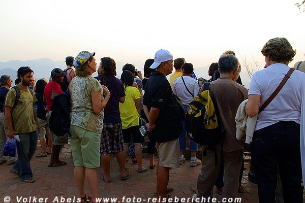 Ich lief ein wenig herum und genoss die Aussicht vom Berg. Langsam wurde es dämmerig und die meisten Menschen drängten sich in Richtung Sonnenuntergang. Obwohl ich schon früh oben am Tempel war, konnte ich keinen guten Platz ergattern. Und das Geschnatter in vielen Sprachen machte den Platz auch nicht wirklich romantisch.